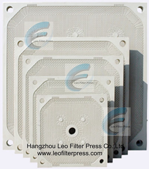 Leo Filter press offers different size ofmembrane filter plates. Among all the filter press plates, the membrane filterplates can help reduce filtering cycle time and help client to get dryer filtercakes. The Membrane Filter Press Working Principleand Membrane Filter Press Operation: How does a filter press work? The filter press is a main solid liquidseparation equipment for filtering, the working principle is simple and eventhe automatic filter press also easy to be operated.The filter press will workby a feeding pump which will inlet slurry to filter press chambers continuouslywhen the chambers are full, the filter press will open to dump out all thefilter cakes produced in the filtration. Membrane Filter Plate Size: from 400mm to2000mm Membrane Filter Plate Membrane Material:Rubber or PP Membrane Squeezing Pressure: from 6bar to20bar Membrane Filter Press Capacity: from 1L to20cbm Membrane Material Quality: High quality forexporting standard Testing Method: air or water and inflatedmembrane sheets for membrane squeezing pressure endurable test